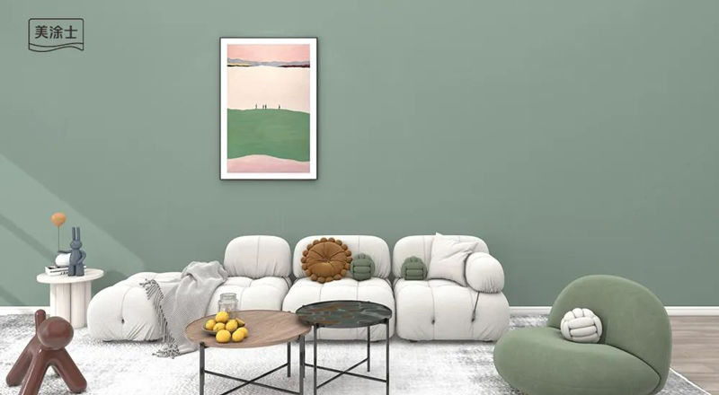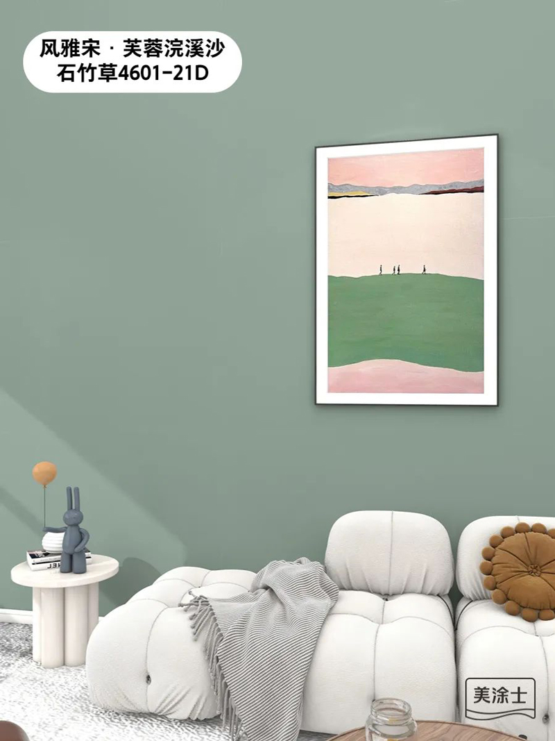 710公海线路检测国潮色天鹅绒苔藓绿MTR038,淡淡的复古绿色在流连的光影中波光琉璃,搭配纯色软装,以及亮色门框,一深一浅,一明一暗,增强了空间的和谐度。亮金色装饰架作为空间中的点缀色,营造出奢而不俗的现代典雅氛围感。