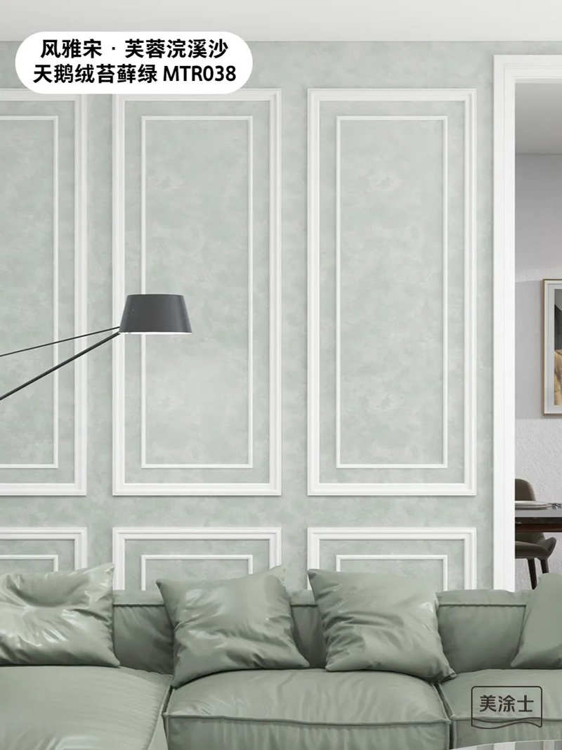 时尚是个轮回,兴盛于千禧年的天鹅绒艺术漆,与充满复古气息的苔藓绿融为一体,有别于现代装修风格和千篇一律的全屋白墙设计中,重新戳中了人们的心。